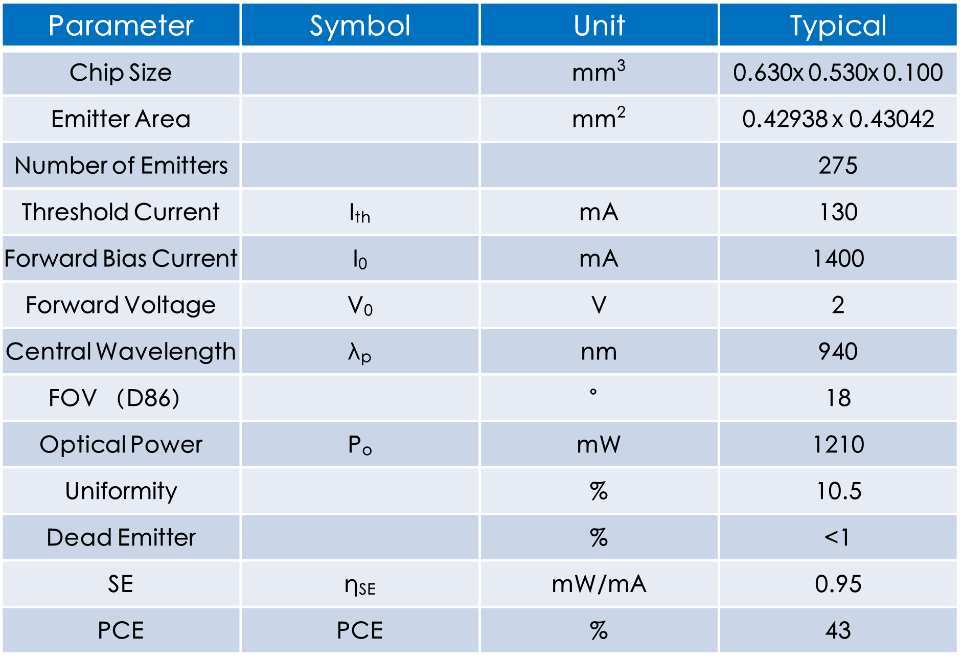 非規(guī)則陣列940nm VCSEL 功率:1.2W PCE:43% 可定制pattern開(kāi)發(fā)