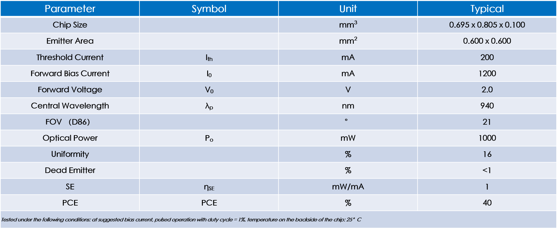 Irregular array 940nm VCSEL Power: 1W PCE:40% Development of customizable pattern