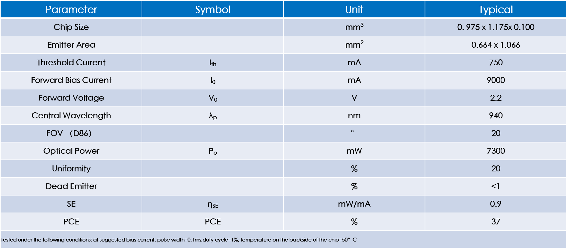 Regular array 940nm VCSEL Power: 8W PCE:20%