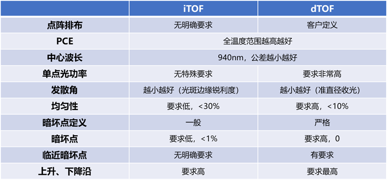 不同3D成像技術對VCSEL的要求差異